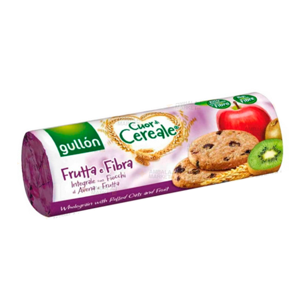 Biscuiți Gullón Cuor di Cereale Oats & Fruit 300 g – O gustare echilibrată care combină fulgi de ovăz, făină integrală şi ulei vegetal de floarea‑soarelui bogat în oleic, cu o selecţie de fructe uscate – stafide, piure de mere şi suc de kiwi. Ideală pentru momentele când vrei o gustare dulce, dar cu fibre şi energie.