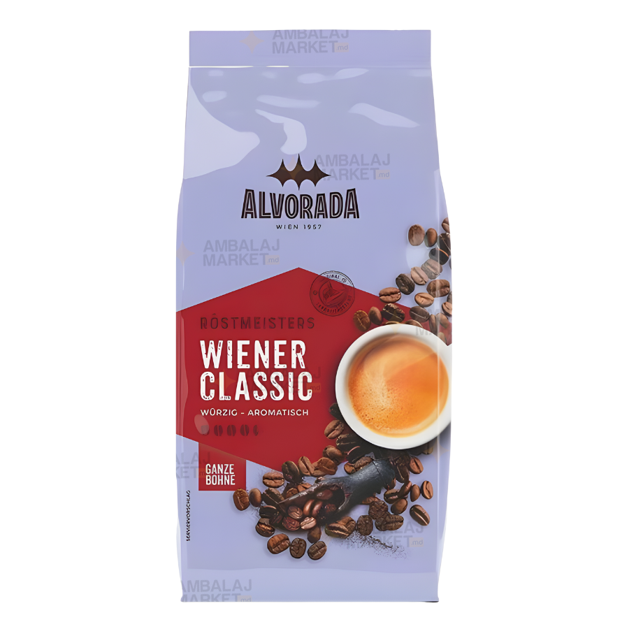 ALVORADA Wiener Classic 1kg – cafea boabe prăjite mediu cu aroma clasică vieneză, echilibrată și plină de caracter. Această combinație tradițională de boabe Arabica și Robusta oferă un profil aromatic bogat, cu note subtile de ciocolată neagră, nuci și un ușor ton picant, pentru o ceașcă de cafea armonioasă și plăcută. Gustul este echilibrat cu intensitate medie, potrivit atât pentru espresso, cât și pentru cafea cu lapte.