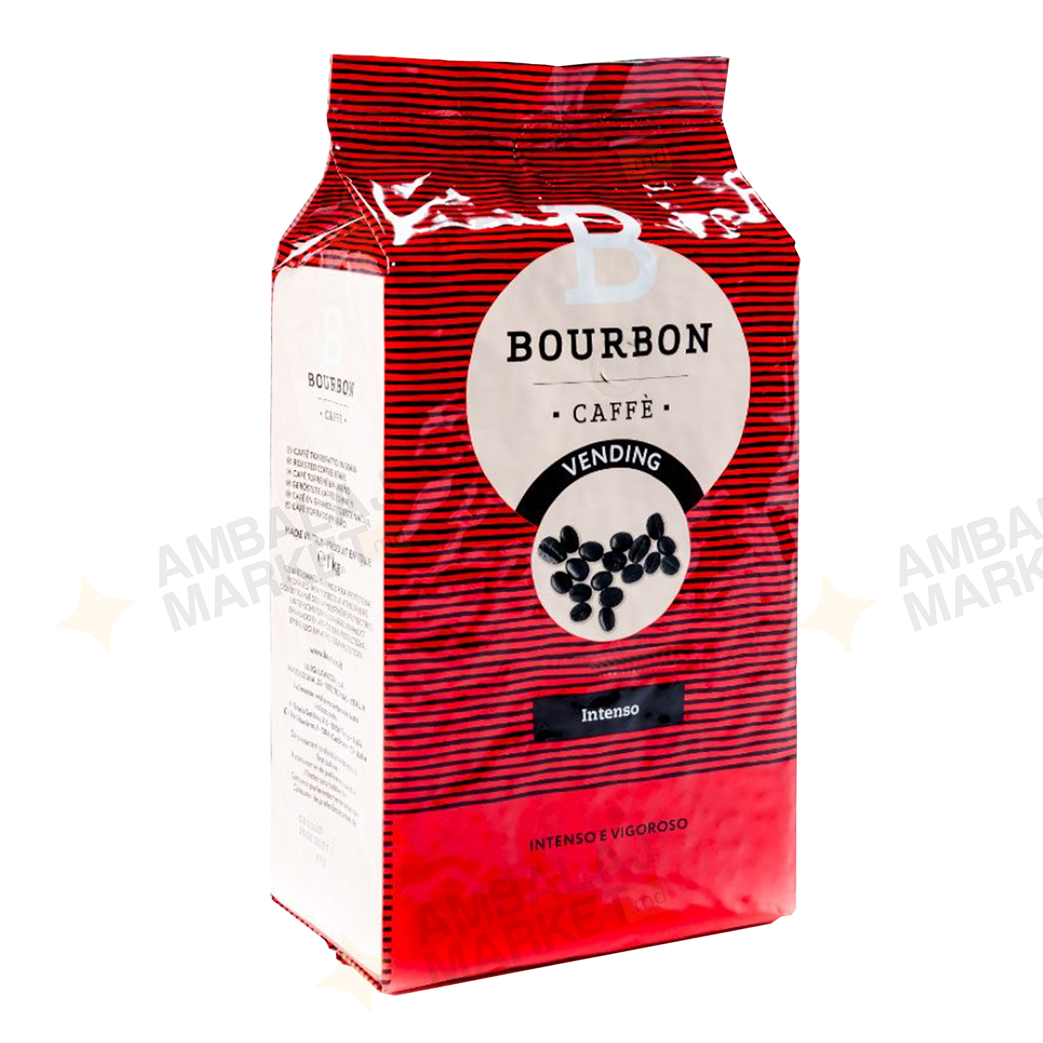 Lavazza Bourbon Intenso este o cafea cu prăjire intensă, având un gust bogat și un parfum intens, completat de note lemnoase și condimentate.