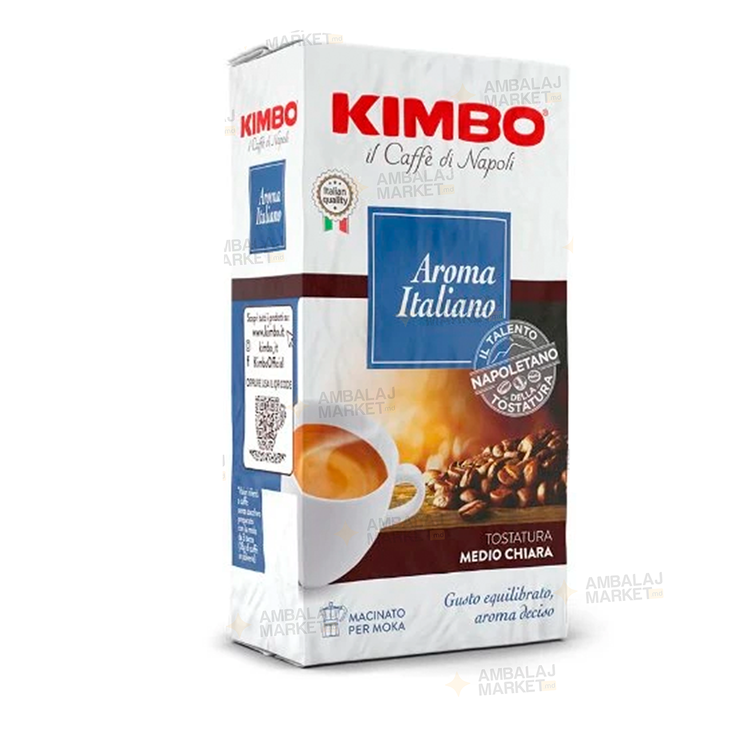 Cafea măcinată KIMBO Aroma Italiano 250 g – Descoperă adevăratul gust italian cu un espresso cremos, echilibrat și plin de caracter. Inspirat de tradiția napolitană, acest cupaj de Arabica și Robusta oferă un echilibru perfect între intensitate și finețe, cu note ușor prăjite și accente de ciocolată și migdale.