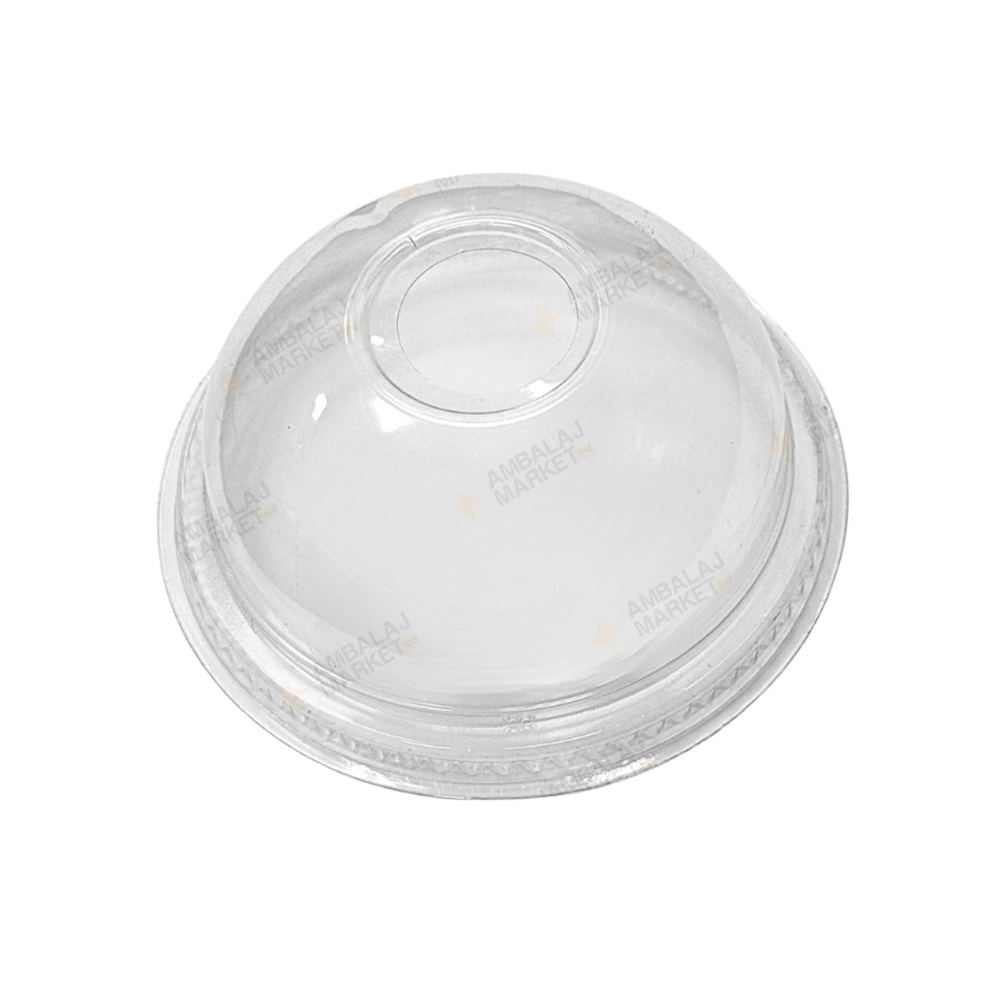 Capac din PET transparent, cu formă bombată și cu orificiu pentru pai. Potrivit pentru pahare PET standard destinate băuturilor reci, inclusiv smoothie-uri, frappe-uri sau iced coffee. Fabricat din material PET de înaltă calitate, sigur pentru contact alimentar și reciclabil. Ambalare standard: 50 bucăți/set.