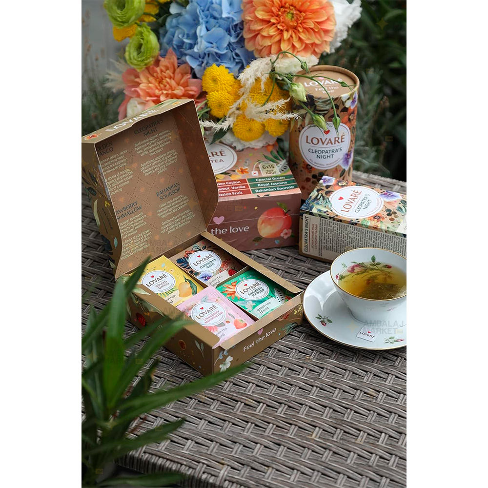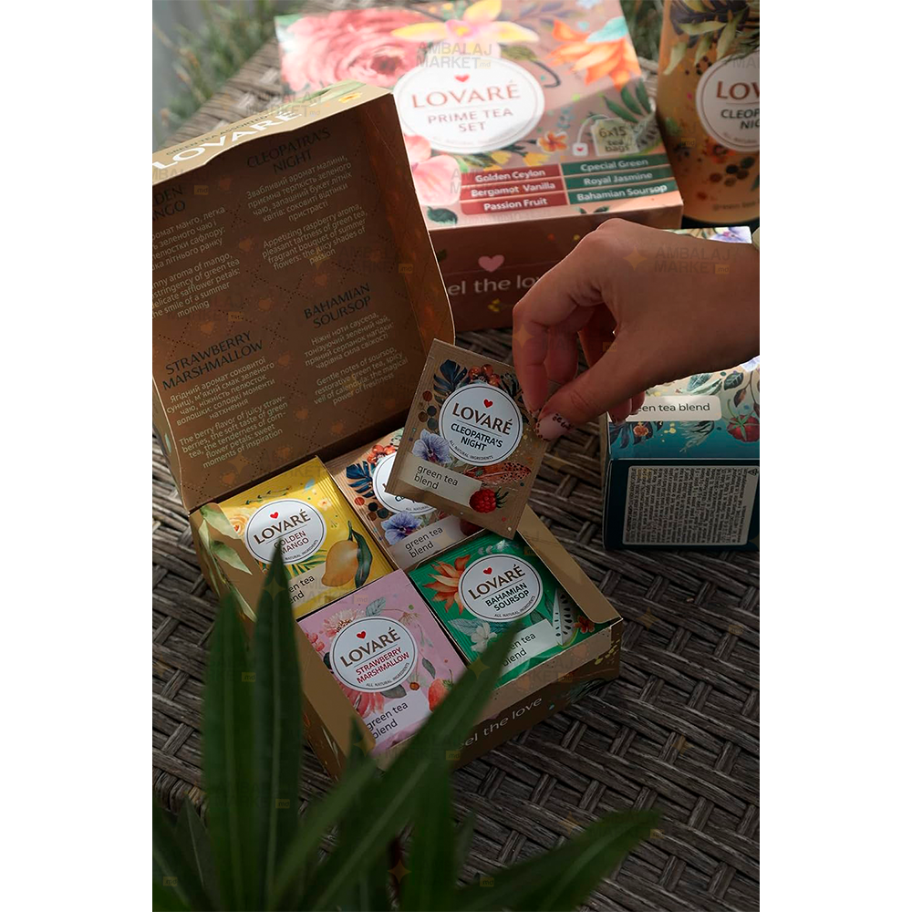 - Ambalaj: plicuri individuale ambalate într-o cutie decorativă, aspect elegant și cadou