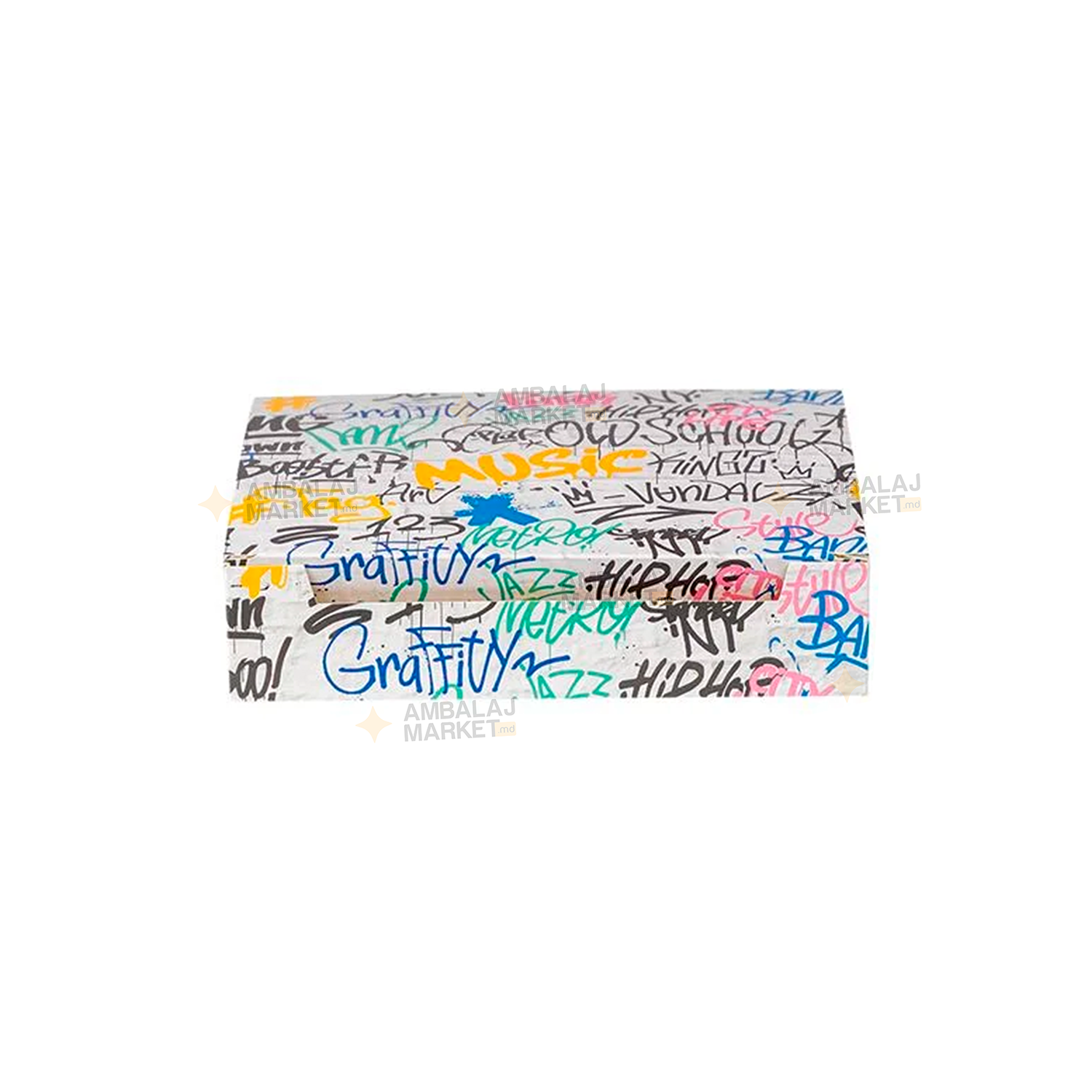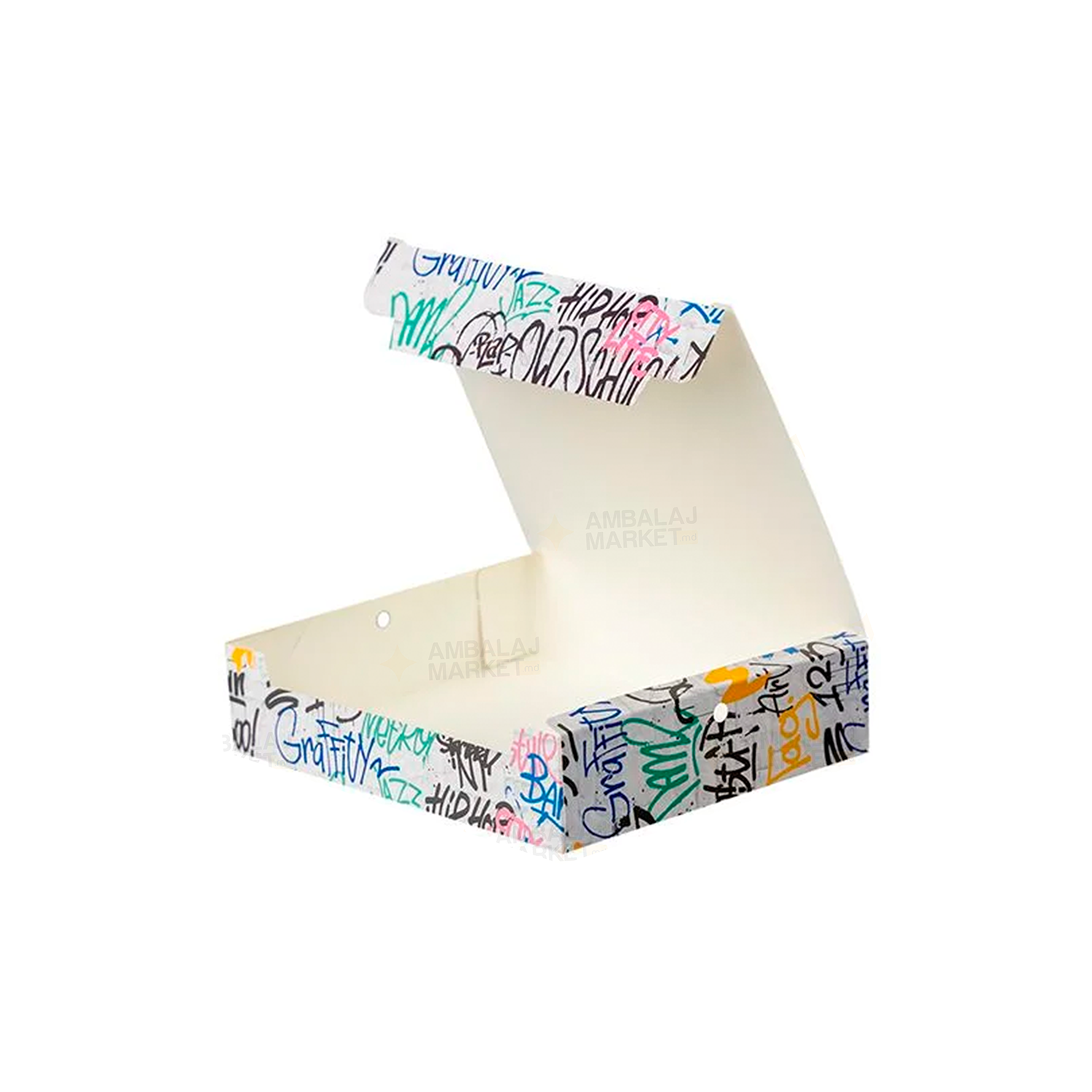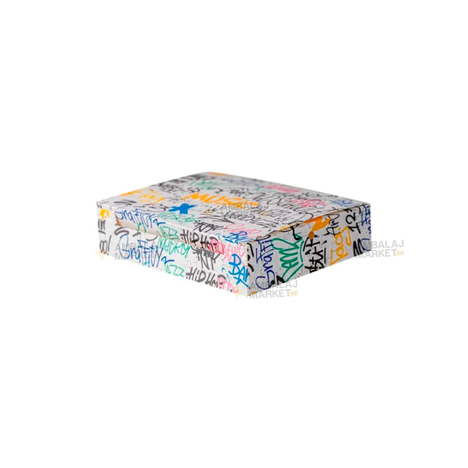 Ambalaj practic și modern, cu design graffiti. Cutia este ușor de asamblat și asigură protecția produsului datorită stratului interior rezistent la grăsimi și umezeală.