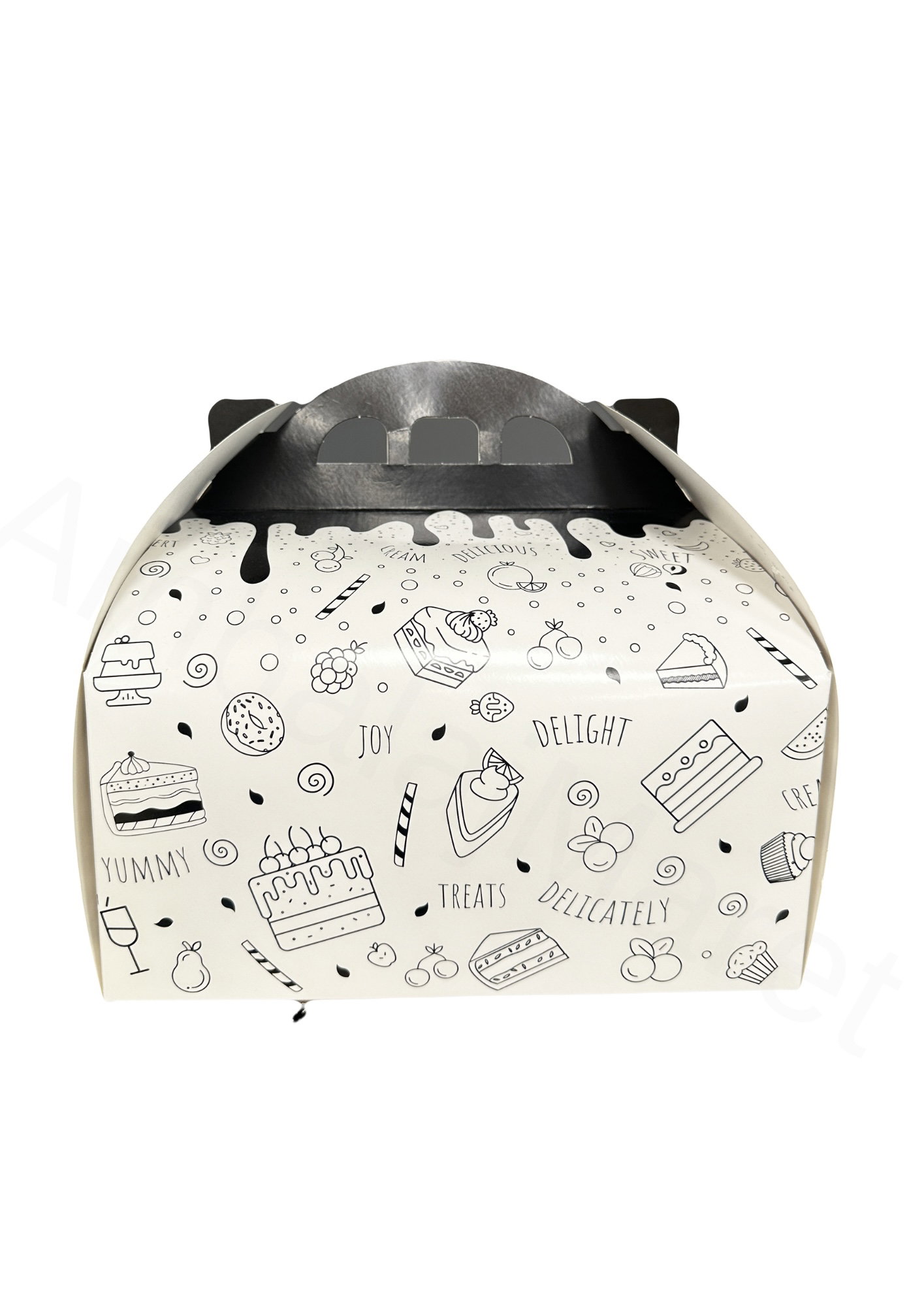 - Material durabil: Fabricată din carton rezistent, cutia oferă stabilitate și protecție pentru produsele de patiserie, prevenind deteriorarea acestora în timpul transportului.