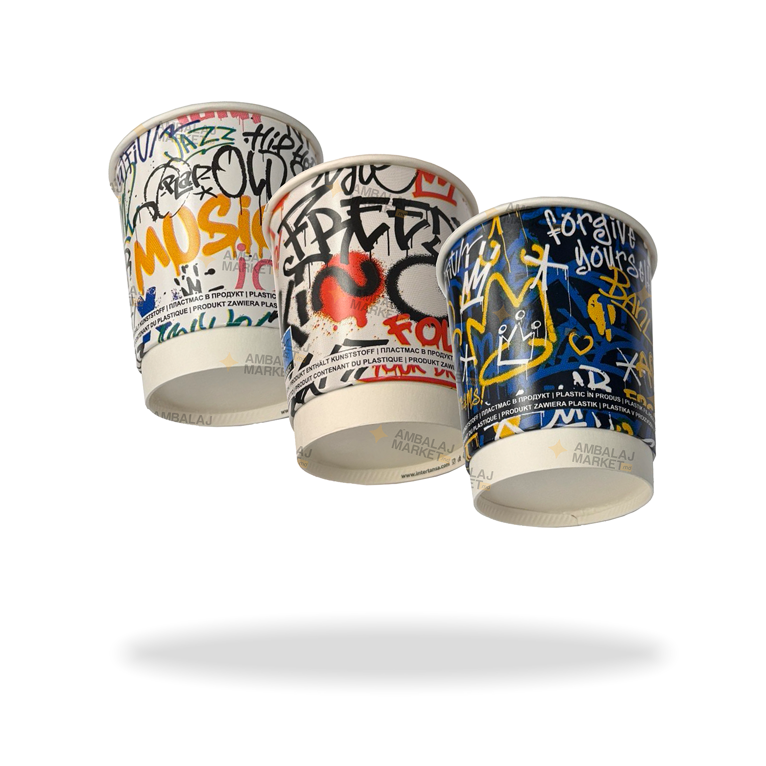 - Conținut: 25 pahare mixate aleatoriu în 3 designuri grafitti